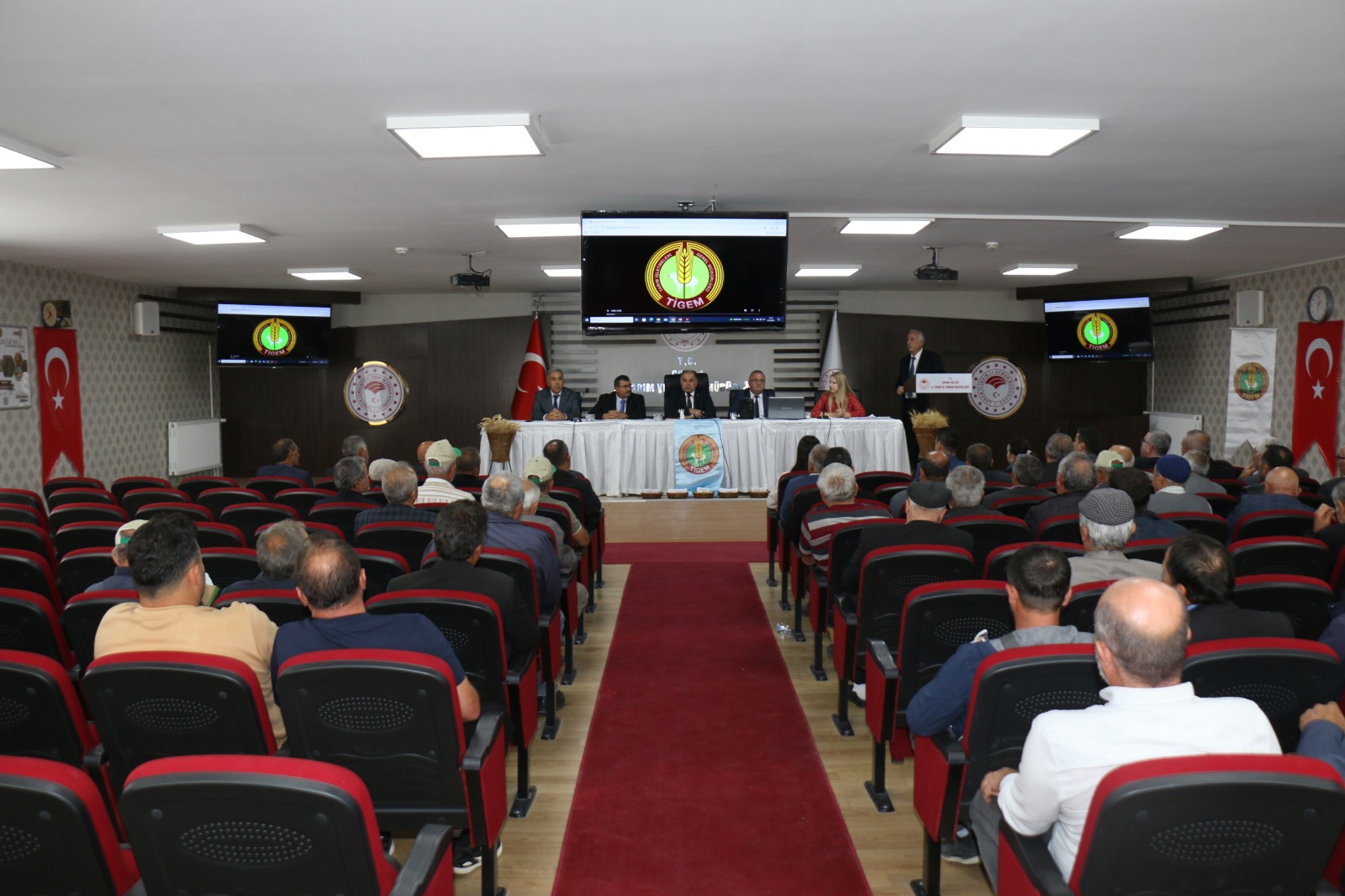 Çorum ve Kırşehir Ziraat Odası Başkanlıklarında 8-10 Ekim tarihleri arasında düzenlenen toplantılara, TİGEM Bitkisel Üretim Dairesi Başkanlığı ile Gökhöyük ve Malya Tarım İşletmelerinde görev yapan uzman personellerden oluşan komisyon katıldı. Gerçekleşen buluşmalarda üreticilere, TİGEM’in tarımsal faaliyetleri, sertifikalı tohumluk üretimi ve yeni hububat çeşitleri hakkında detaylı bilgiler aktarıldı.